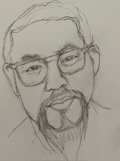 This is a drawing of my friend, Dr. Jay Ding, chiropractor. But he’s not a regular chiropractor, the kind that spends twenty minutes on you, making adjustments, and tells you to come back one, two, maybe three times the following week; no, Dr. Ding will have you on his table as long as is necessary to fix you, which could mean a good two hours or more. The first time I went to him, I had impingement in my hip which caused a slight limp when I walked. I was on his table for over two hours, and when I wanted to pay him, he said, “No, we’re not finished, you can pay up next time.” Next time? I was leaving for a trip to Russia two days later, but Ding said he still wanted to put needles in me (he does that too, along with adjustments). Walking around Moscow, I was surprised to find I was no longer in pain. I thought, Wow, this is a good city for me, too bad I can’t live here, and then I realized that my new pain-free condition had to do with Ding, the miracle worker, and not the walkability of Moscow. Now I make sure to see Dr. Ding every few months because I have an older arthritic body that needs regular attention if I want to continue drawing, dancing, standing in front of an easel. The good thing is he’s a sweet guy who’s incredibly funny and keeps you entertained the whole time you’re on his table. I cannot tell you how glad I am to have him in